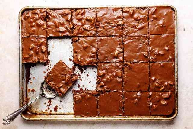 Because it is normally baked in a generous American half sheet pan (13×18 inches), it became a favorite